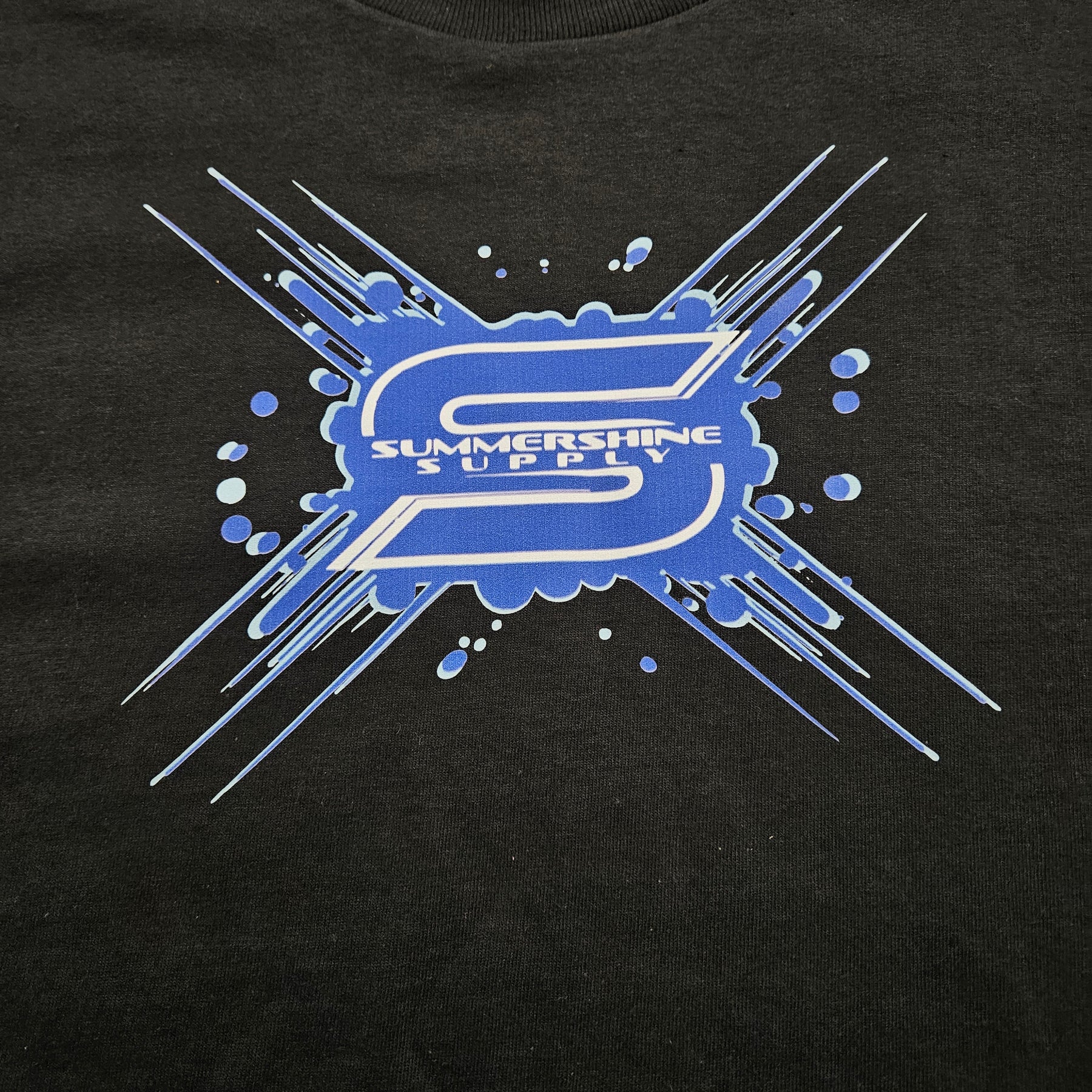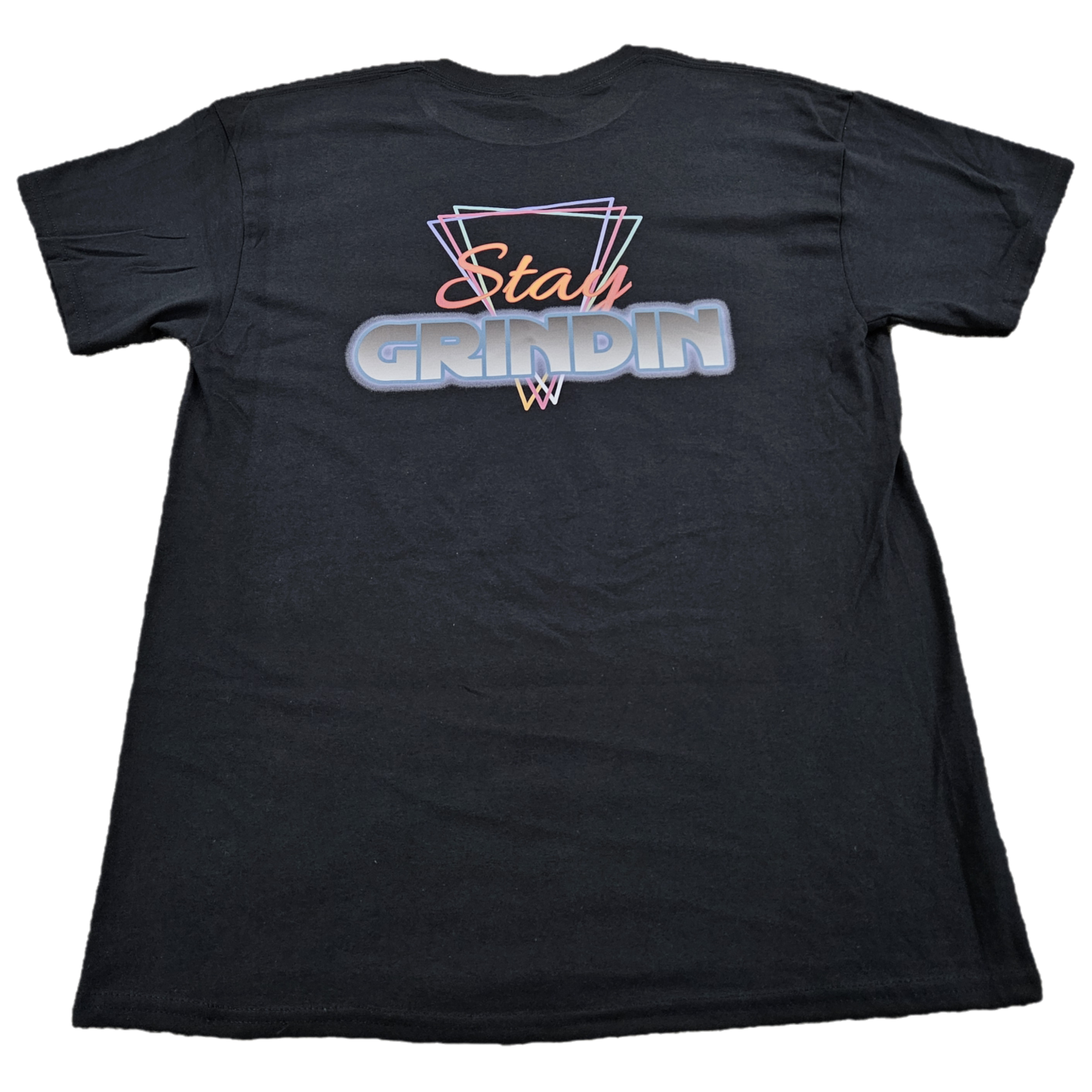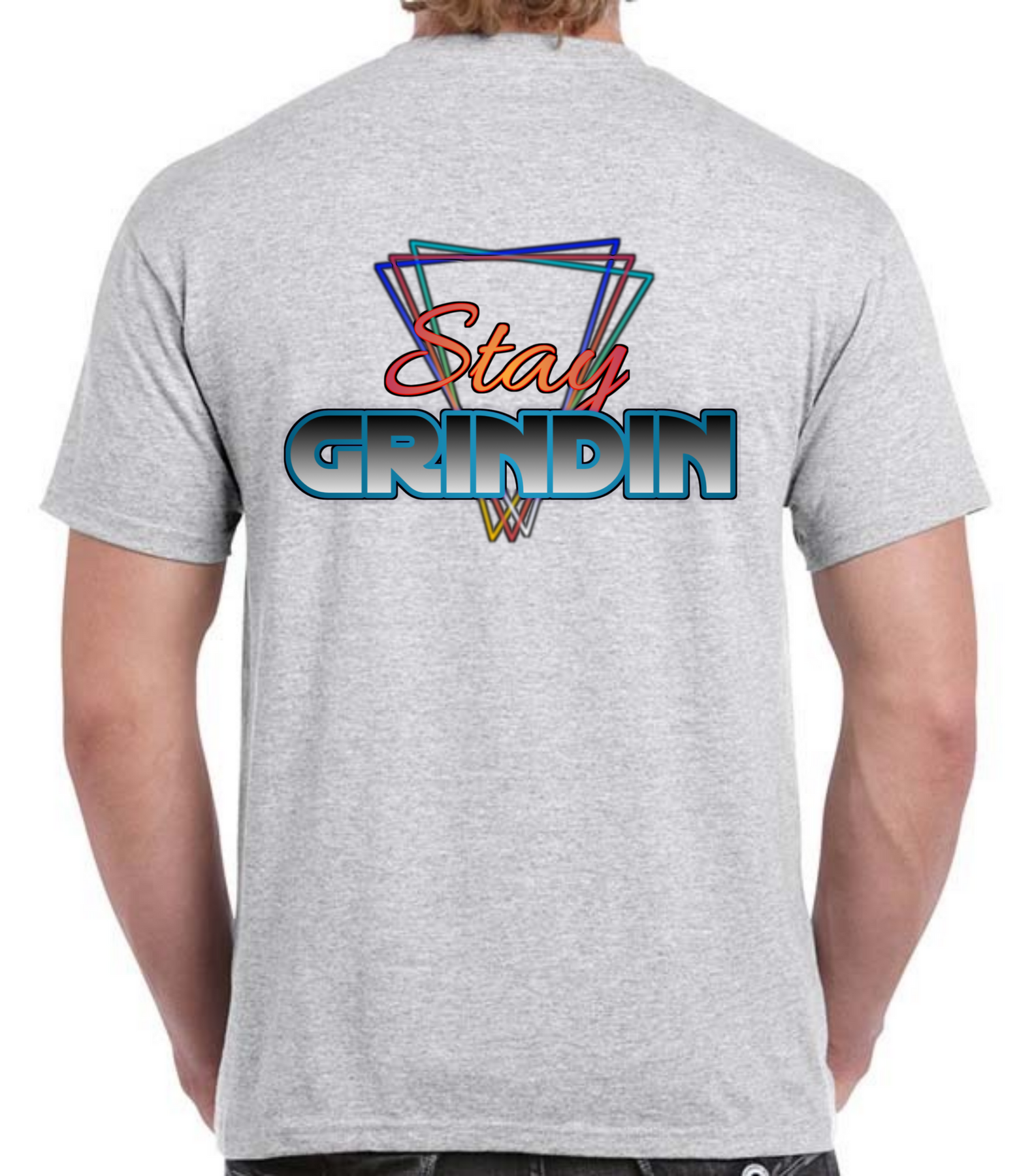 Our fresh new SummerShine Supply logo on the front and our classic Stay Grindin retro logo on the back.
